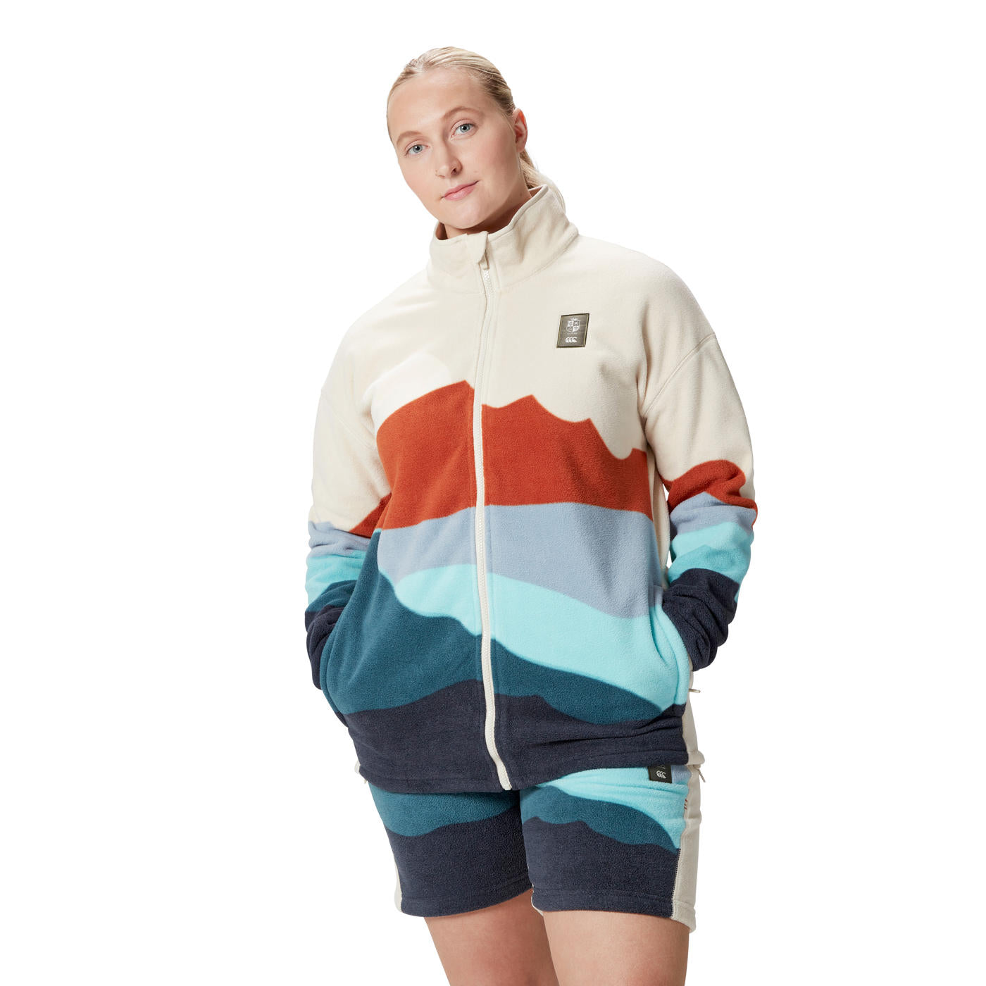 De fleece heeft een regular fit en is gemaakt van zacht polyester dat warmte biedt zonder zwaar aan te voelen. De volledige ritssluiting maakt het makkelijk om de jas aan en uit te trekken, terwijl de verstelbare koorden in de zoom zorgen voor een pasvorm naar wens. Praktische ritszakken houden je persoonlijke spullen veilig opgeborgen. Een veelzijdige fleece voor fans van de British & Irish Lions die hun steun zichtbaar willen maken.